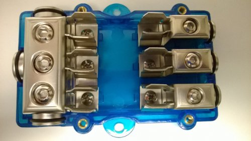 CARXTC AGU Fuse Block Holds 2 fuses Platinum Color (2 or 4 Gauge Input, 8 Gauge Output)