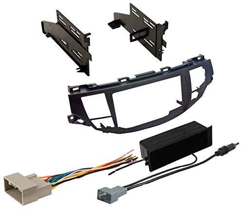 Carxtc Stereo Dash Kit + Wire Harness + Antenna Adapter Fits Honda Accord 08-12 Crosstour 10-12 Gray Metallic Color - Works in Accords W/Out Factory Navigation and has a Single Climate Control Knob