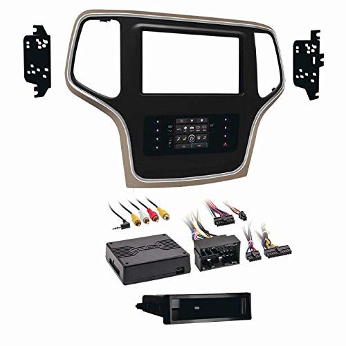 Carxtc Double or Single Din Install Car Stereo Dash Kit, Electronic Harness and Antenna Adapter for a Aftermarket Radio Fits 2014-2017 Jeep Grand Cherokee w/Bronze Color Dash